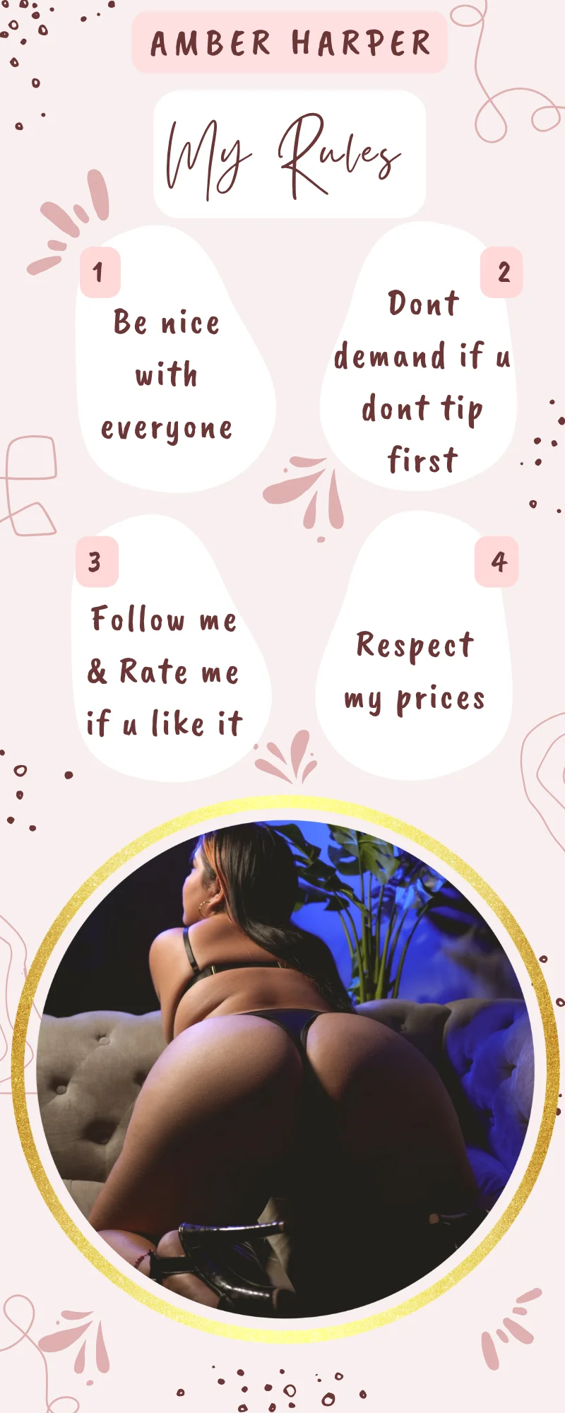 Ahegao, Smiskning, Erotisk dans, Kameltå, Fot Fetisch, Blottning, Massage, Twerk, Högklackat, Kukbetyg, Fingrar, Snuskprat, Striptease, Ansiktssittande, Runkningsinstruktion, Bröstknull, Topless, Dildo eller Vibrator, Sexleksaker, Avsugning, Onani, Fotjobb, Cowgirl, Oljeshow, Deepthroat